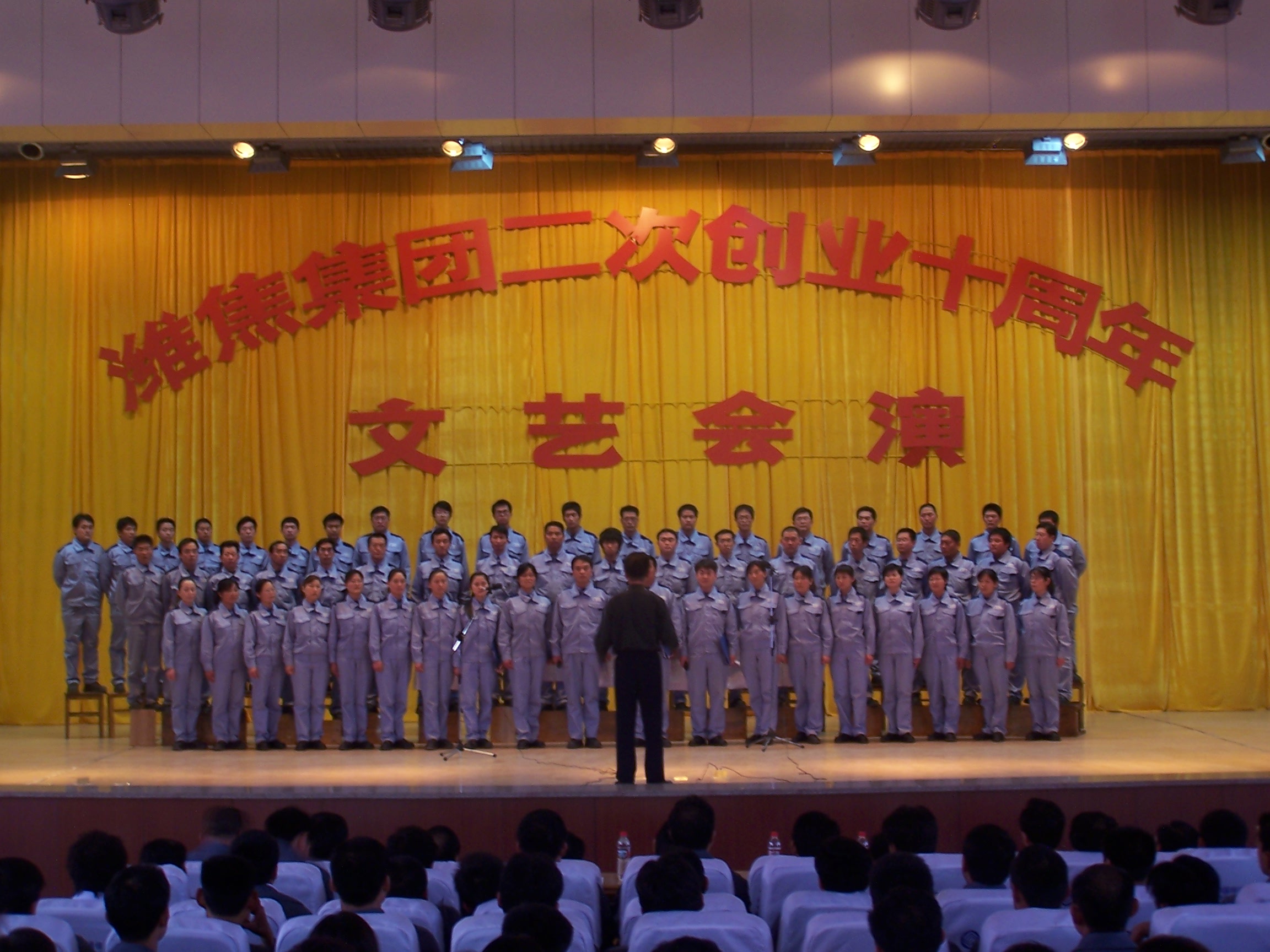 2008514上午900,濰焦集團二次創業十周年文藝會演在職工俱樂部隆重舉行。董事長夏云國、副董事長、總經理周興華,黨委書記姜萬祿,(足球比分 www.banglie.com)常務副總經理劉良玉等公司領導與朱劉街辦主任劉清濤、人大工作室主任高衛國以及濰焦員工700多人一同觀看了演出。