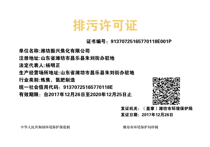 振興焦化公司順利取得環保排污許可證