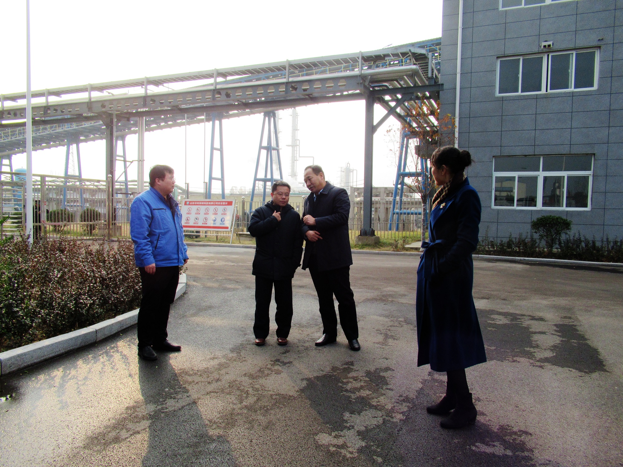 孫洪剛首先參觀了維度公司,認真聽取老區的情況介紹,并對老區周邊狀況進行了考察。隨后對中科綠碳科技公司進行了參觀,聽取了DMF裝置試驗、成果鑒定、新工藝節能減排和中試平臺運行等情況。