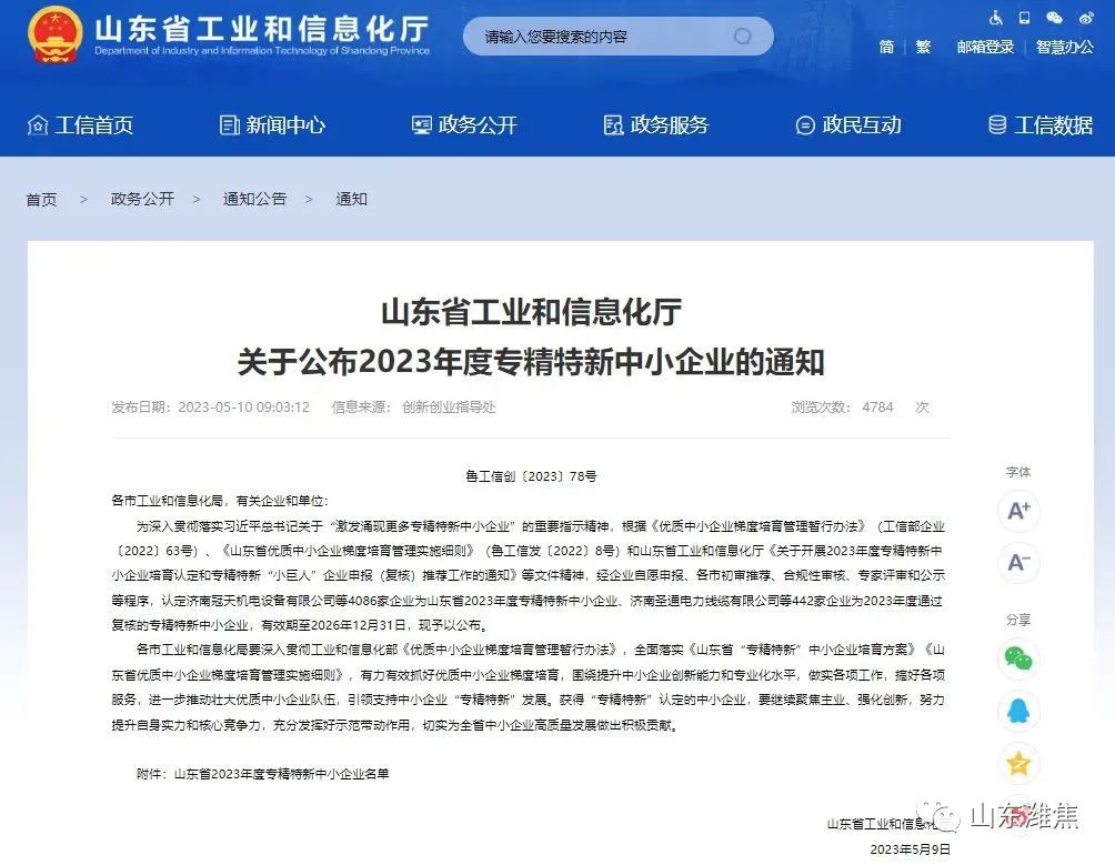 5月10日,山東省工業(yè)和信息化廳發(fā)布了《山東省2023年度專精特新中小企業(yè)名單公示》,振興新材料公司、振興炭材公司被認(rèn)定為“山東省2023年度專精特新中小企業(yè)”。